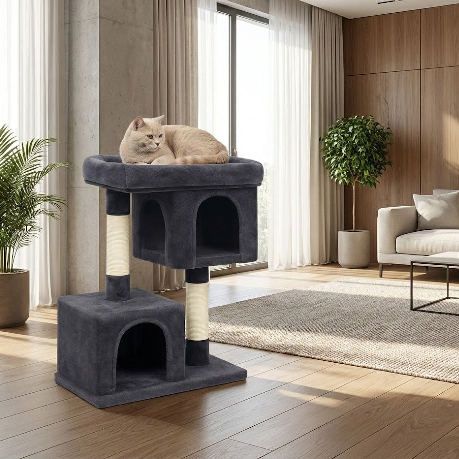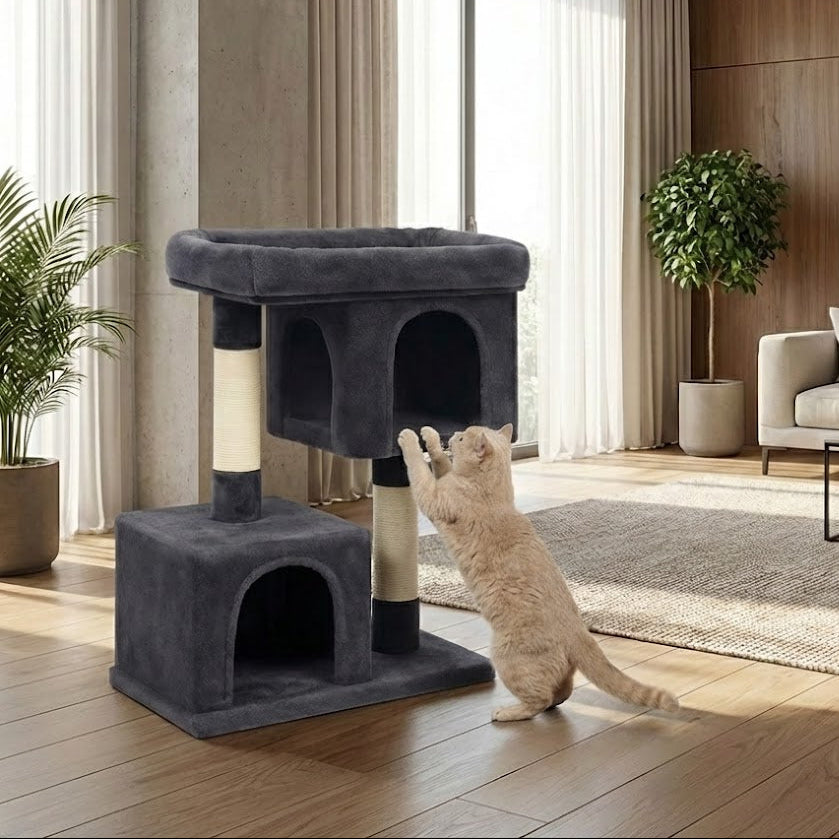 Votre chat n’a pas besoin de complexité pour être heureux. Deux niveaux suffisent pour lui permettre de grimper, se reposer confortablement et garder un œil sur son environnement. Une routine douce s’installe, faite de petits moments de calme et de présence.